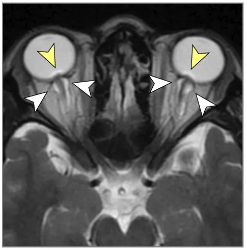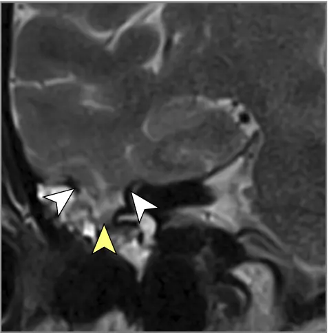 მრტ მიგნებები, რომლებიც მიუთითებს ინტრაკრანიალურ ჰიპერტენზიაზე (ხშირად ჩანს IIH-ში, მაგრამ შეიძლება მოხდეს ქრონიკული აწეული ICP-ის სხვა მიზეზებით) [9]:
