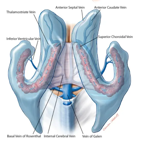 | დურალური ვენური სინუსის თრომბოზი (DVST) | ხშირად ძლიერი თავის ტკივილი (შეუძლია მიბაძოს IIH ან შაკიკი). კრუნჩხვები, კეროვანი დეფიციტები (ვენური ინფარქტების/სისხლჩაქცევის გამო), პაპილედემა/აწეული ICP ნიშნები ხშირია. რისკ-ფაქტორები ხშირად არსებობს (პროთრომბოტული მდგომარეობა, ორსულობა, ინფექცია, დეჰიდრატაცია). | MR ვენოგრაფია (MRV) ან CT ვენოგრაფია (CTV) ადასტურებს ნაკადის / თრომბის ("შევსების დეფექტი") ნაკლებობას დურალურ სინუსებში ან კორტიკალურ ვენებში. თავის ტვინის მრტ/კტ-მ შეიძლება აჩვენოს ვენური ინფარქტები (ხშირად ჰემორაგიული) ან შეშუპება. |