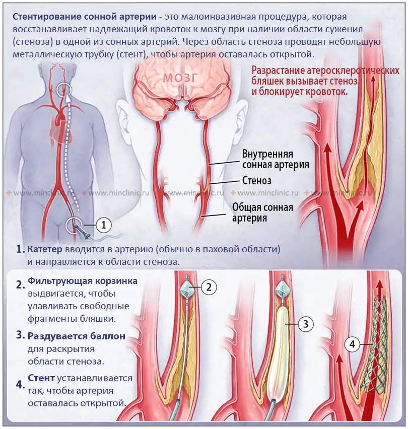 - Атеротромботическое поражение внутренней сонной артерии и её ветвей