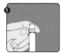 Step 1: With one hand, hold the syringe (E) with the cap pointing upward. Be sure to hold the syringe by the white textured holding ring (D).