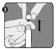 Step 3: Lift up to remove the cap (A) and the attached gray tip cap (B). Be careful not to touch the sterile syringe tip (C).
