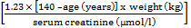 CLcr(ml/min) = (x 0.85 for female patients)