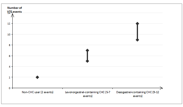 It is estimated1 that out of 10,000 women who use a CHC containing desogestrel, between 9 and 12 women will develop a VTE in one year. This compares with about 62 in women who use a levonorgestrel-containing CHC.