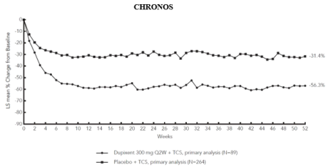 Dupilumab can be used with or without topical corticosteroids. Topical calcineurin inhibitors may be used, but should be reserved for problem areas only, such as the face, neck, intertriginous and genital areas.