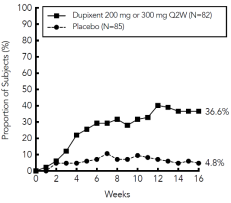 Consideration should be given to discontinuing treatment in patients who have shown no response after 16 weeks of treatment for atopic dermatitis. Some patients with initial partial response may subsequently improve with continued treatment beyond 16 weeks. If dupilumab treatment interruption becomes necessary, patients can still be successfully re-treated.