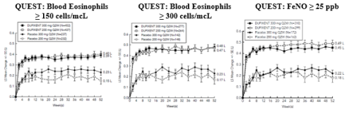 Cases of eosinophilic pneumonia and cases of vasculitis consistent with eosinophilic granulomatosis with polyangiitis (EGPA) have been reported with dupilumab in adult patients who participated in the asthma development program. Cases of vasculitis consistent with EGPA have been reported with dupilumab and placebo in adult patients with co-morbid asthma in the CRSwNP development program. Physicians should be alert to vasculitic rash, worsening pulmonary symptoms, cardiac complications, and/or neuropathy presenting in their patients with eosinophilia. Patients being treated for asthma may present with serious systemic eosinophilia sometimes presenting with clinical features of eosinophilic pneumonia or vasculitis consistent with eosinophilic granulomatosis with polyangiitis, conditions which are often treated with systemic corticosteroid therapy. These events usually, but not always, may be associated with the reduction of oral corticosteroid therapy.