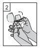 2. Hold the base of the inhaler firmly and open the mouthpiece by pulling it upwards, in the direction of the arrow to open it.