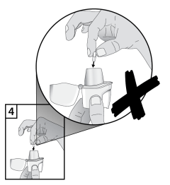 6. Hold the inhaler with the mouthpiece upwards, and press the piercing button completely in once. Release the button. This will pierce the capsule and allows the medication to be released when the patient breathes in.