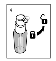When used for the first time, the dosing pump does not dispense the correct amount of oral solution. Therefore, the pump must be prepared (primed) by pushing the dosing pump head down completely five times in succession (fig 5.)