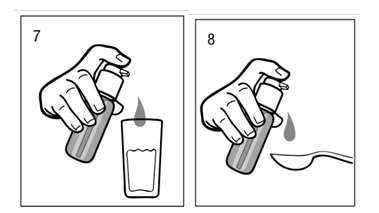 The solution must not be pipetted into the mouth directly from the bottle but should be dosed onto a spoon or into a glass of water using the pipette.