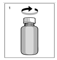 Prior to first use the dosing pump has to be screwed on the bottle. For removing the screw cap from the bottle the cap must be turned anticlockwise ad unscrewed completely (fig.1).