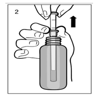 Insert the pipette into the bottle. While holding the bottom ring, pull the top ring up to the mark that corresponds to the number of millilitres or milligrams you need to give.