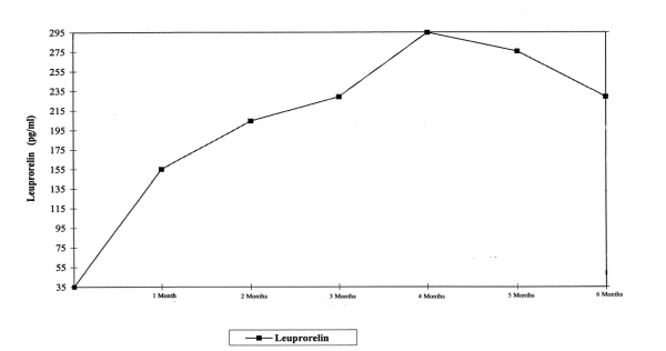 In an open, prospective clinical trial involving 205 patients receiving 3.75 mg leuprorelin acetate on a monthly basis as treatment for metastatic prostate cancer, the long-term efficacy and safety of leuprorelin acetate was assessed. Testosterone levels were maintained below the castrate threshold over the 63-month follow up period. Median survival time exceeded 42.5 months for those receiving monotherapy and 30.9 months for those receiving leuprorelin acetate in combination with anti-androgens (this difference relating to baseline differences between groups)