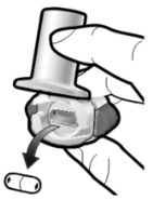 The capsule may be stuck in the capsule chamber. If this happens, carefully loosen the capsule by tapping the base of the inhaler. Inhale the medicine again by repeating steps 3a to 3d.