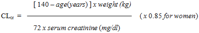 Patients with moderate to severe renal impairment: the dosing intervals must be individualized according to renal function. Refer to the following table and adjust the dose as indicated. To use this dosing table, an estimate of the patient's creatinine clearance (CLcr) in ml/min is needed. The CLcr (ml/min) may be estimated from serum creatinine (mg/dl) determination using the following formula: