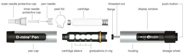 Dacepton solution for injection in cartridge is intended for multidose use by subcutaneous intermittent bolus injection using only the dedicated D-mine-Pen.