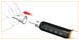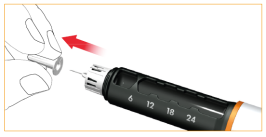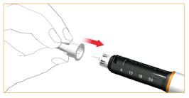 Remove the outer needle protective cap. Keep the outer needle protective cap to safely remove and dispose of the pen needle after use.