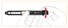 For the function check, hold the pen pointing upwards and gently tap the cartridge sleeve, so that the air can rise to the top.