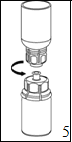 5. With one hand grasp the product-side of the Mix2Vial set, and with the other hand grasp the solvent-side and unscrew the set carefully into two pieces.