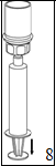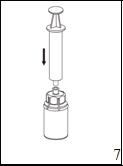 7. Draw air into an empty, sterile syringe. Use the syringe provided with the product. While the product vial is upright, connect the syringe to the Mix2Vial's Luer Lock fitting. Inject air into the product vial.
