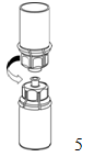5. With one hand grasp the product-side of the Mix2Vial set, and with the other hand grasp the solvent-side and unscrew the set carefully into two pieces.