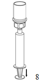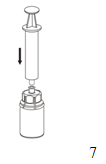 7. Draw air into an empty, sterile syringe. Use the syringe provided with the product. While the product vial is upright, connect the syringe to the Mix2Vial's Luer Lock fitting. Inject air into the product vial.