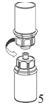 5. With one hand grasp the product-side of the Mix2Vial set, and with the other hand grasp the solvent-side and unscrew counterclockwise the set carefully into two pieces.