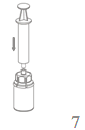7. Draw air into an empty, sterile syringe. While the product vial is upright, connect the syringe to the Mix2Vial's Luer Lock fitting by screwing clockwise. Inject air into the product vial.