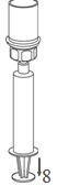 8. While keeping the syringe plunger pressed, turn the system upside down and draw the solution into the syringe by pulling the plunger back slowly.