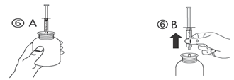d) Turn the bottle the right way up (figure 6A). Remove the syringe from the adaptor (figure 6B).