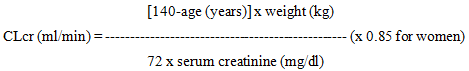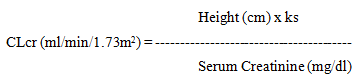 The CLcr in ml/min/1.73m2 may be estimated from serum creatinine (mg/dl) determination, for young adolescents, children and infants using the following formula (Schwartz formula):