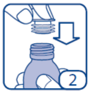• On using the bottle for the first time, the pipette adaptor must be fitted. It will then stay in place for future doses. Holding the bottle, take the plastic pipette adaptor from the box and insert the adaptor into the bottle neck (figure 2). Ensure it is well fixed.