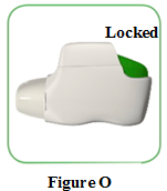 When the green button will not return to its full upper position and is locked in a middle position, you have reached the last dose (Figure O). Even though the green button is locked, your last dose may still be inhaled. After that, the inhaler cannot be used again and you should start using a new inhaler.