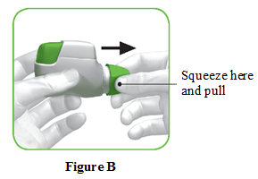 c) Pull off the cap by lightly squeezing the arrows marked on each side (Figure B).
