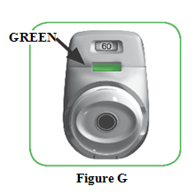 1.4 Press the green button all the way down to load your dose (Figure E).