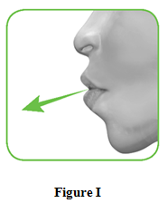 2.2 Hold your head upright, put the mouthpiece between your lips, and close your lips tightly around it (Figure J).
