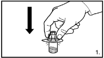 1. Remove the cover from the vial adapter pack. Attach the adapters to the powder vial by pressing the adapter down until the spike pushes through the rubber stopper and the adapter snaps in place.