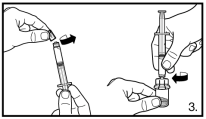 3. Remove the cap of the pre-filled syringe. Attach the syringe to the powder vial by screwing it on to the adapter. Transfer all solvent to the powder vial.