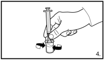 5. Turn the vial upside down and draw up to the line mark on the syringe for injection.