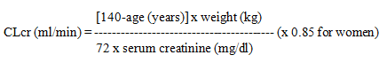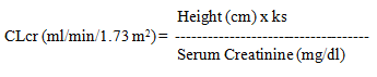 The CLcr in ml/min/1.73 m2 may be estimated from serum creatinine (mg/dl) determination, for young adolescents, children and infants, using the following formula (Schwartz formula):
