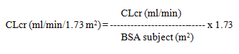 Then CLcr is adjusted for body surface area (BSA) as follows: