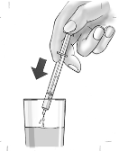 8. Push the medicine out of the syringe into a small glass with some liquid (not grapefruit juice). Avoid any contact between the syringe and the liquid in the glass. The medicine can be mixed just before it is taken. Stir and drink the entire mixture right away. Once mixed it should be taken immediately after preparation.