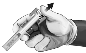 - Take the syringe out of the cardboard box: pick up the syringe by the syringe guard body.