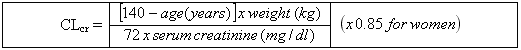 Group Creatinine clearance (ml/min) Dosage and frequency