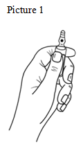 • Hold with the hand the bottom part of the ampoule (picture 1)