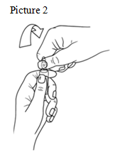 • Put the other hand on the top of the ampoule positioning the thumb above the coloured point and press (picture 2)