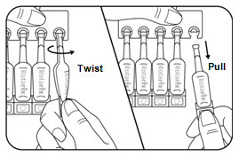 Instructions for administration of the vaccine in a multi-monodose (5 single dose) squeezable tube presentation connected by a bar: