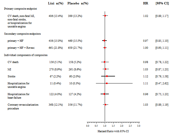 Overall, 6068 patients were randomized 1:1 to either placebo or lixisenatide 20 mcg (following a starting dose of 10 mcg during the first 2 weeks).