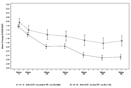 The pharmacokinetic (PK) parameters in the anti-TNF inadequate responder population, following the same dosage regimen (2 x 1,000 mg, intravenous, 2 weeks apart), were similar with a mean maximum serum concentration of 369 μg/mL and a mean terminal half-life of 19.2 days.