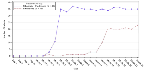 In the event of relapse, patients may receive 1000 mg IV. The healthcare provider should also consider resuming or increasing the patient's glucocorticoid dose based on clinical evaluation.